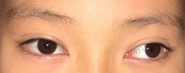 眼位向外偏斜,一般可分为间歇性与恒定性外斜视。间歇性外斜视因病人具有较好的融像能力,大部分的时间眼位可由融像能力维持在正常的位置,间歇性外斜视常会发展成恒定性外斜视。