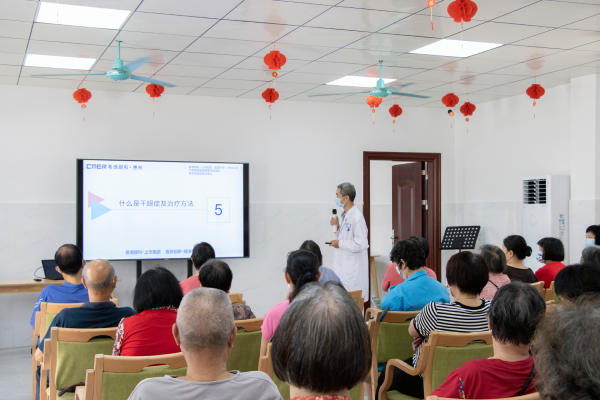 义诊活动现场,惠州希玛眼科医院白内障专科、眼综合科主任肖芳兴医生为在场长者开展了眼健康科普讲座。